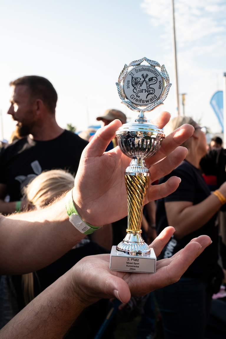 Das Greifswalder Team „Shark Power“ zeigte beim Drachenbootfest beeindruckende Leistungen. Im Vorlauf der Kurzstrecke über 250 Meter in der Einteilung SPORT erkämpften sie sich den ersten Platz mit einer Zeit von 1:04,68 Minuten. Auch im Finale der 250m Mixed-Sport, waren sie stark vertreten und erreichten dort den dritten Platz mit 1:05,64 Minuten. Auf der Langstrecke über 1350 Meter belegte „Shark Power“ mit einer Zeit von 6:58,32 Minuten den 6. Platz. Mit diesen Ergebnissen unterstrich das Team seine Spitzenstellung im regionalen Drachenbootsport und sorgte für ausgelassene Jubelstimmung unter den heimischen Fans am Ryck.